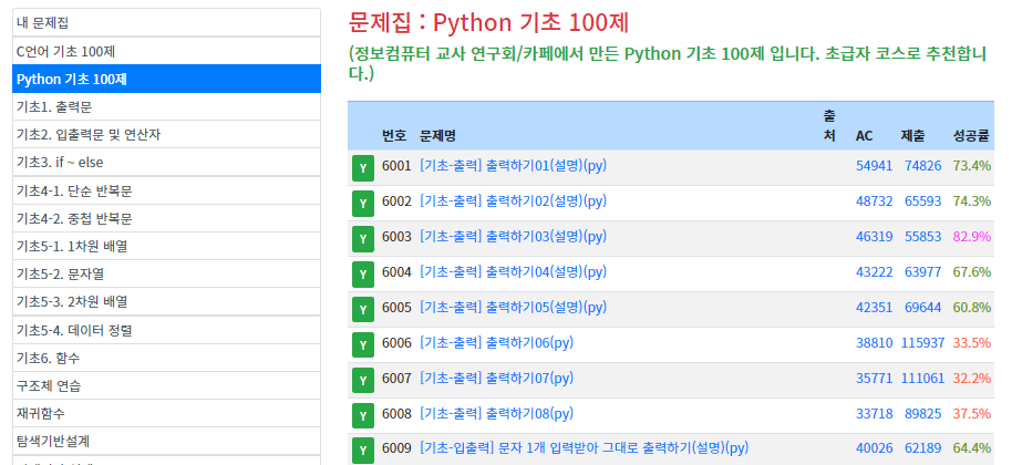 드디어 코드업의 파이썬 기초 100제 문제 풀이를 끝냈다! 짝짝-