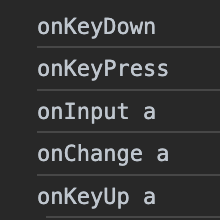 onKeyDown -> onKeyPress -> onInput -> onChange -> onKeyUp의 순서대로 실행이 된다.