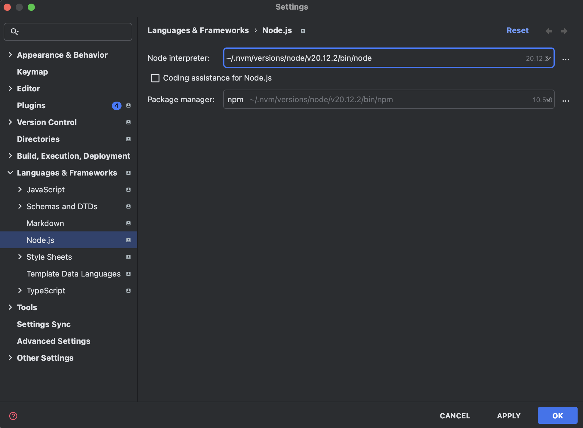 Node interpreter와 Package manager의 버전을 모두 현재 깔았던 버전으로 맞춰준다.