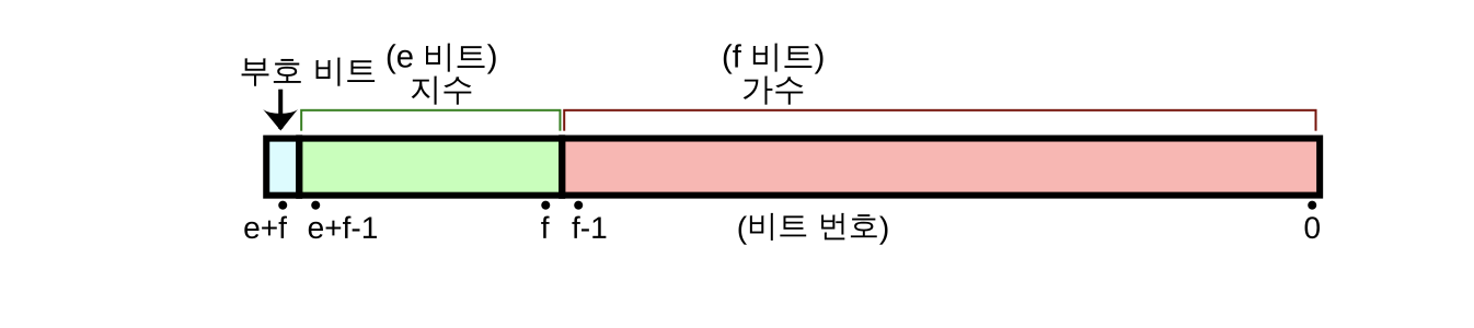 64비트 중에서 각각 부호 비트는 1비트, 지수는 11비트, 가수는 52비트를 차지한다.