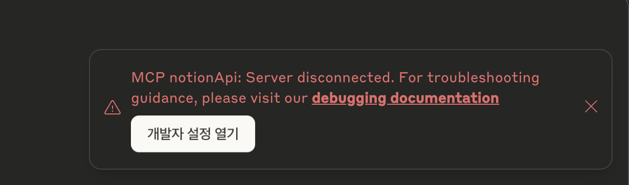 MCP notionApi: Server disconnected. For troubleshooting guidance, please visit our debugging documentation