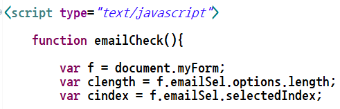 스크립트 태그 하에 emailCheck 함수를 만들어주었으며