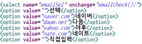 선택한 메일 사이트에 맞는 vale값을 입력해주었다.